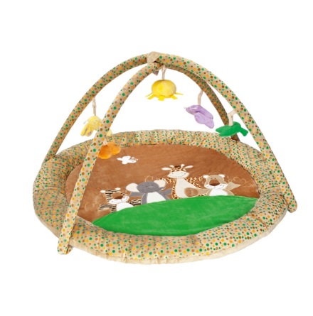 En lekmatta / babygym och tränar barnets sinnen. Här finns det roliga leksaker som främjar hörsel (skallror), känsel (olika texturer och prassel), syn (färglada färger samt hängande spegel), smak (medföljer en bitleksak) med mera.